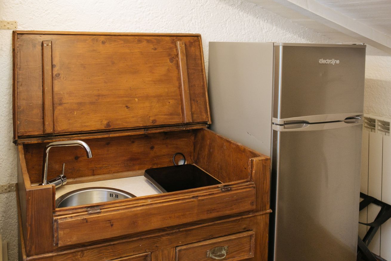 Una zona cottura riservata aggiunge praticità senza disturbare la poesia della stanza.