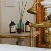Il bagno in travertino naturale completa l’esperienza con eleganza senza tempo.